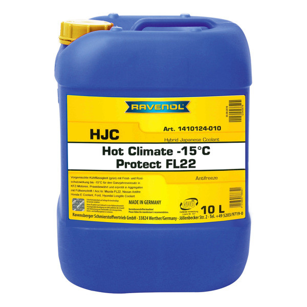 RAVENOL HJC Hybrid Japan.Coolant HOT CLIMATE -15°C is a prediluted coolant with frost and rust protection for year-round use in automotive engines.